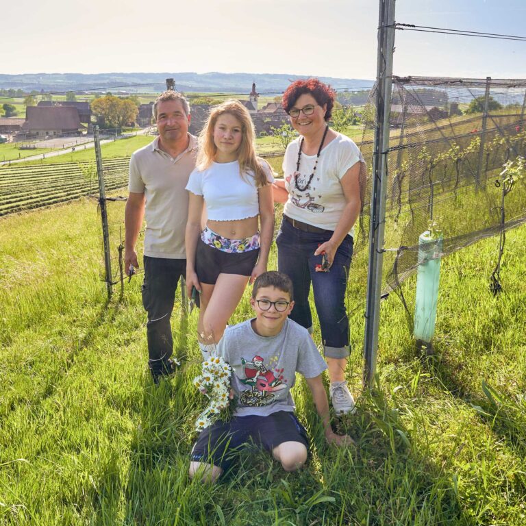Bei uns packt die ganze Familie tatkräftig im Rebberg an.